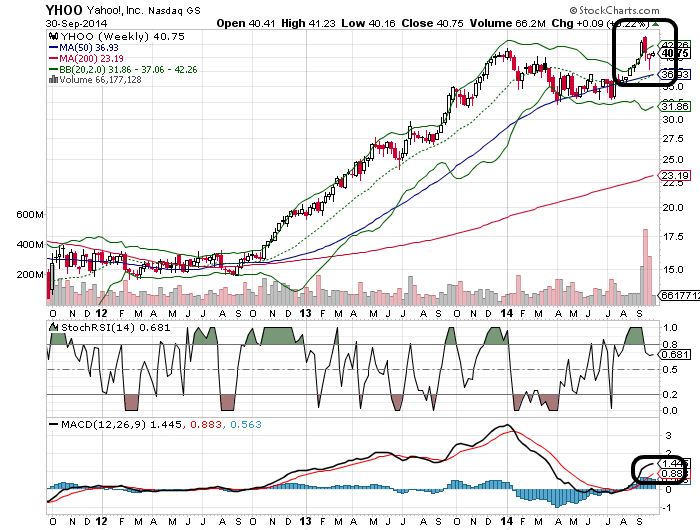 Morgen beginnt das neue Quartal und die Berichtssaison beginnt. Der September hat sich unter dem Strich gar nicht schlecht geschlagen: Der Dow Jones hat gerade einmal ca. 0,3% verloren, der DAX blieb nahezu unverändert. Ich denke, dass die Vorzeichen für das letzte Quartal gar nicht so schlecht stehen und der Dow müsste auf Jahressicht mit einer prosperierenden Wirtschaft im Rücken eigentlich noch etwas Stärke zeigen. Die Umsätze bei Yahoo! und Alibaba liegen beide relativ hoch, auch wenn relativ wenig Bewegung im Kurs war. Ich denke auch, dass momentan beide Kurse "kontrolliert" werden, damit die Rechnung (im Falle der Bekanntgabe einer Übernahme) aufgeht. Niemand hat vor Bekanntgabe einer (möglichen!) Übernahme Interesse daran, dass der Yahoo!-Kurs auf $50 steigt oder Alibaba durch die Decke geht. Das würde den gesamten Deal nur unnötig verteuern (und damit vielleicht auch gefährden). Die Uhr tickt und ich denke, wir werden noch früh genug erfahren, auf welchen Preis man sich letztlich geeinigt hat.