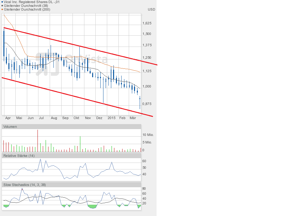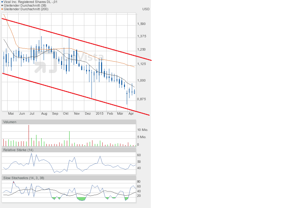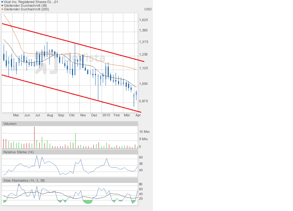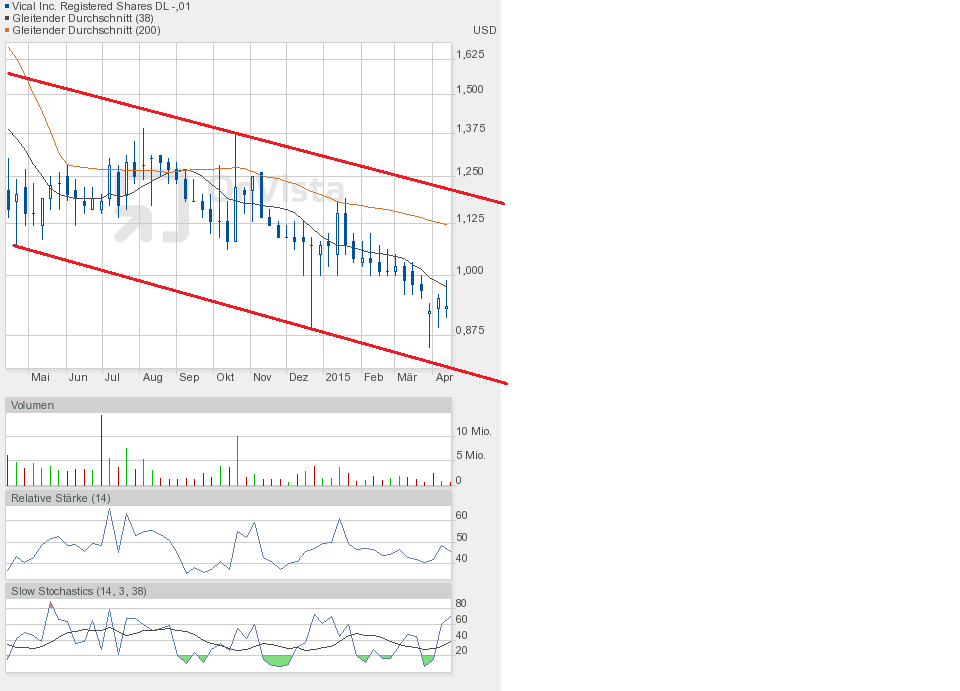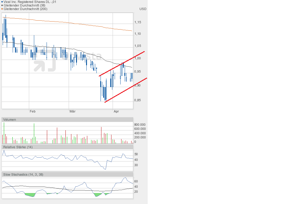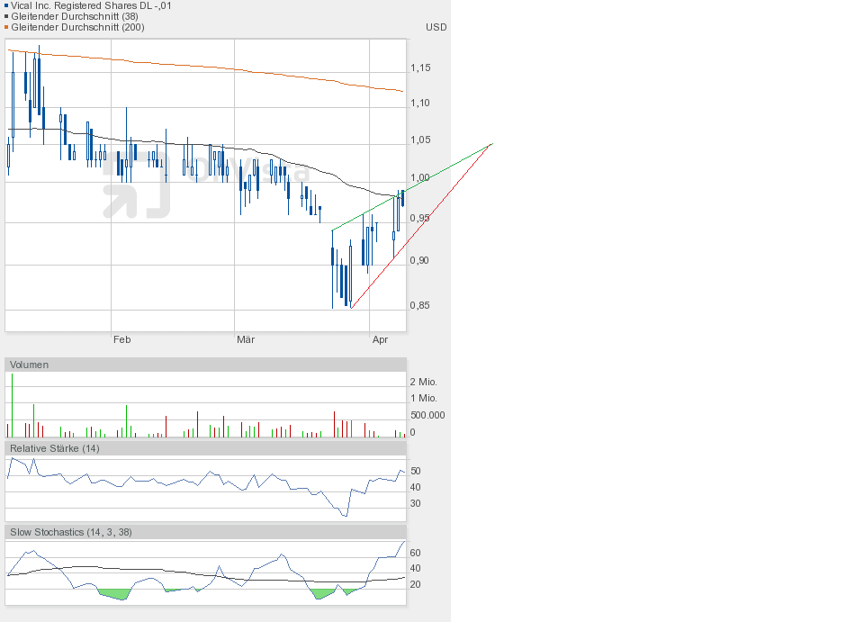 Man musste sich schon die Augen reiben, aber Vical kann doch noch Tagesrallye. Bei 0,85$ kam die Wende schon recht zeitig, dann drehte der Kurs bis auf 0,93$ auf. Schlusskurs 0,92$ mit überdurchschnittlichem Volumen von knapp 500000 Aktien.