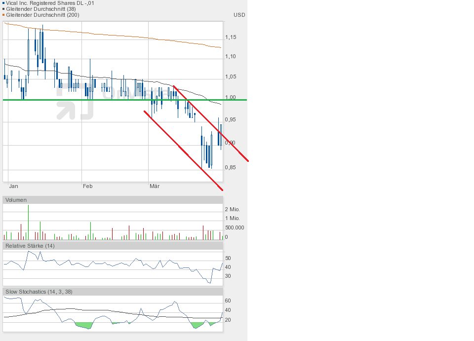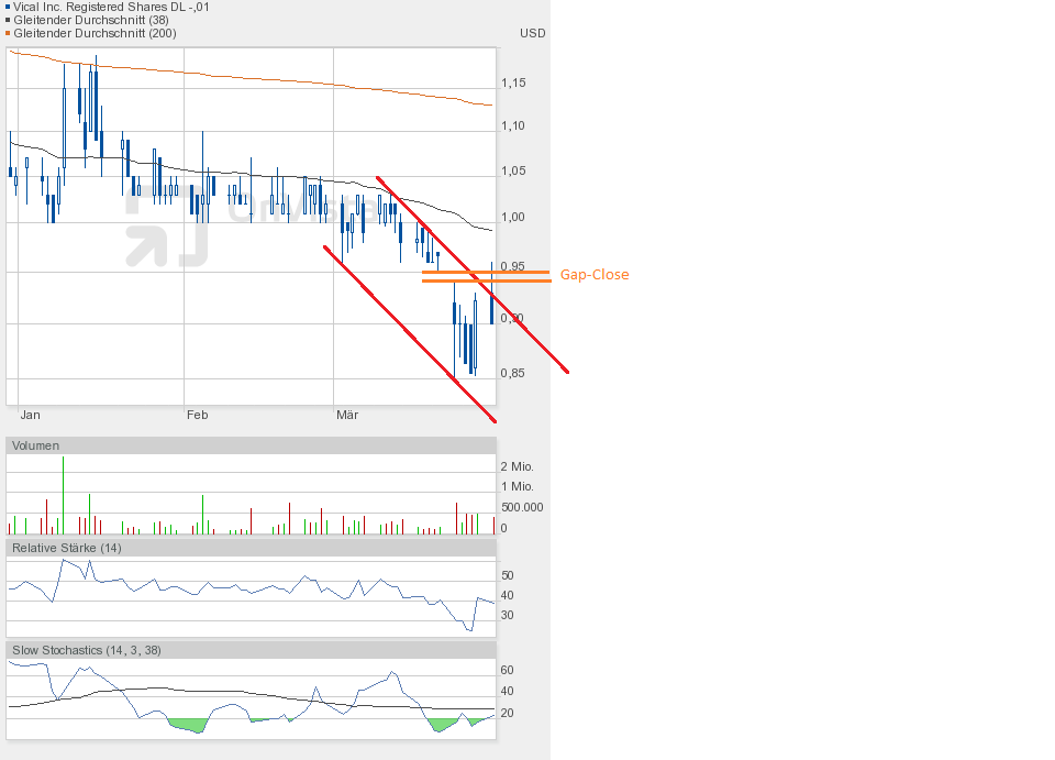 Es sprach alles für einen Besuch der 38-Tage-Linie. Und den haben wir gestern mit 0,98$ im Hoch gesehen. Schlusskurs 0,94$.