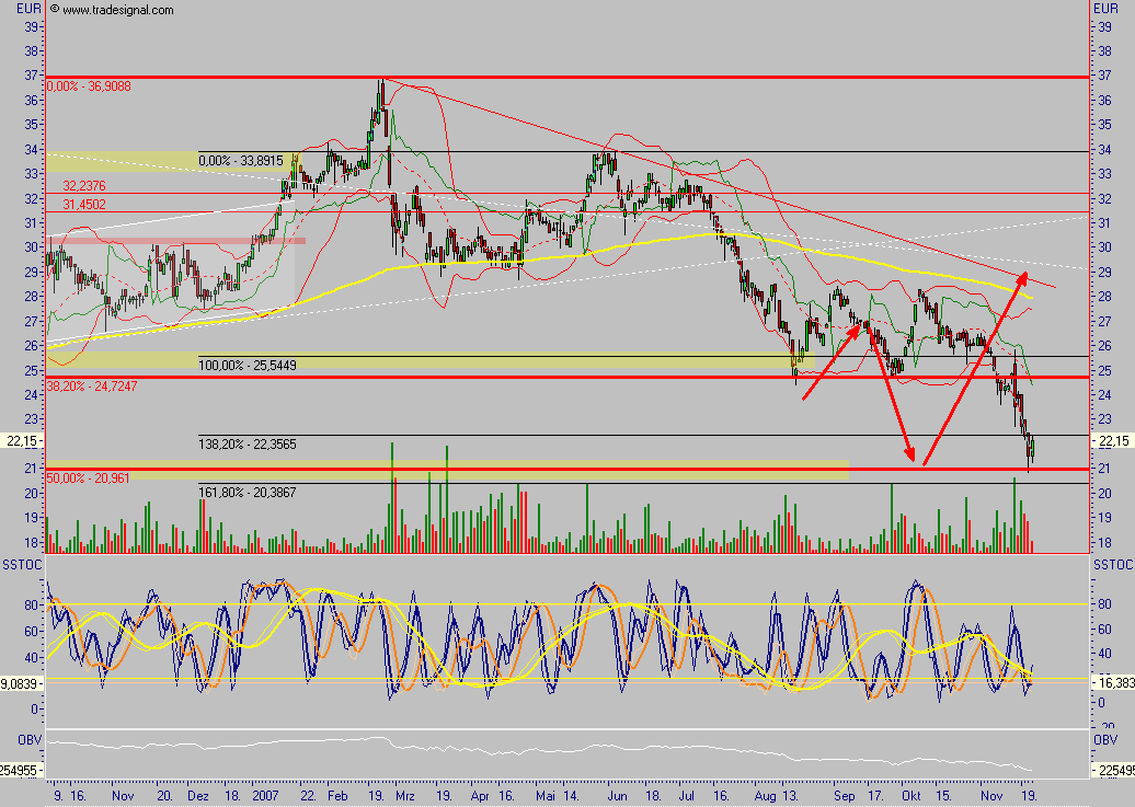 nur genügt so ein Tiefpunkt momentan nur zum Zocken, bis ein neuer Uptrend (eventuell!!) etabliert werden kann. Ich glaub hier haben sich in den letzten Tagen weitere "Große" verabschiedet, die für ´08 net sonderlich positiv gestimmt sind. Letztendlich kann/wird das auch ne gute Bereinigung sein. So langsam ist Sixt so günstig wie im April´05...