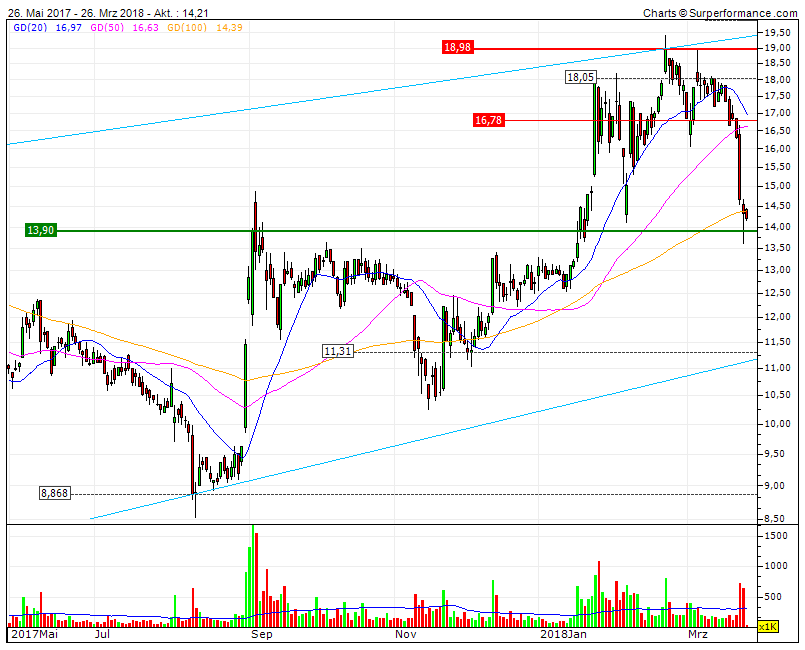erstmal bei € 13 abgeprallt , aber : hängt von den US Futures ab , gehen gerade wieder etwas runter