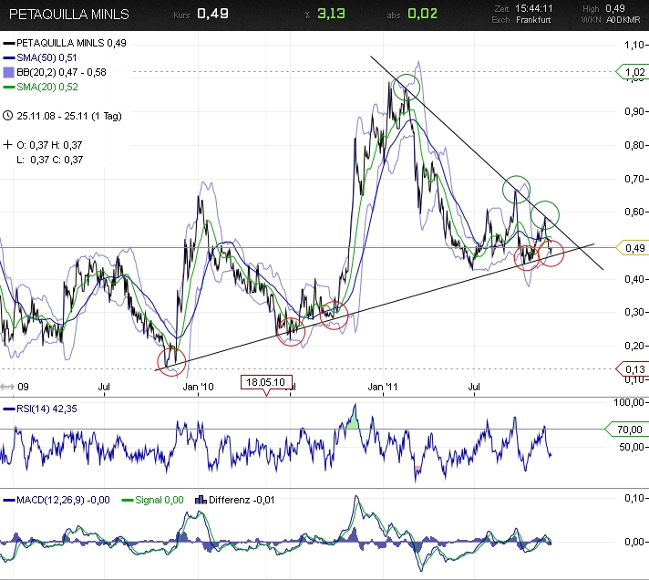 Das 2. Q ist am 30.11.2011 zu Ende gegangen, d. h. jetzt müsste bald die ersten Zahlen von PTQ kommen. Nachdem die Produktion stetig steigt, könnte hier ein tolles Weihachtsgeschenk vor der Türe stehen. Andere Investoren werden PTQ nicht länger ignorieren wollen / können.