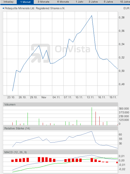 wenn du schon charttechnisch argumentierst, dann weißt du sicher auch, was eine nach unten aufgelöste SKS bedeutet. Deine Argumentation macht doch nur sinn, wenn man noch mal nachkaufen will. Ansonsten sehen wir (wenn der Kurs jetzt noch weiter fällt) zwar irgenwann eine heftige Gegenbewegung, aber die bringt uns dann dahin wo wir jetzt schon sind oder vielleicht geringfügig drüber. Ich fände es besser wenn wir hier, so um die 0,5 einen Boden einziehen könnten um von dort aus das Dreieck nach oben zu verlassen. Aber ehrlich gesagt ist das bei Explorern und Jungen Mienen doch alles ehr von der Nachrichtenlage abhängig.