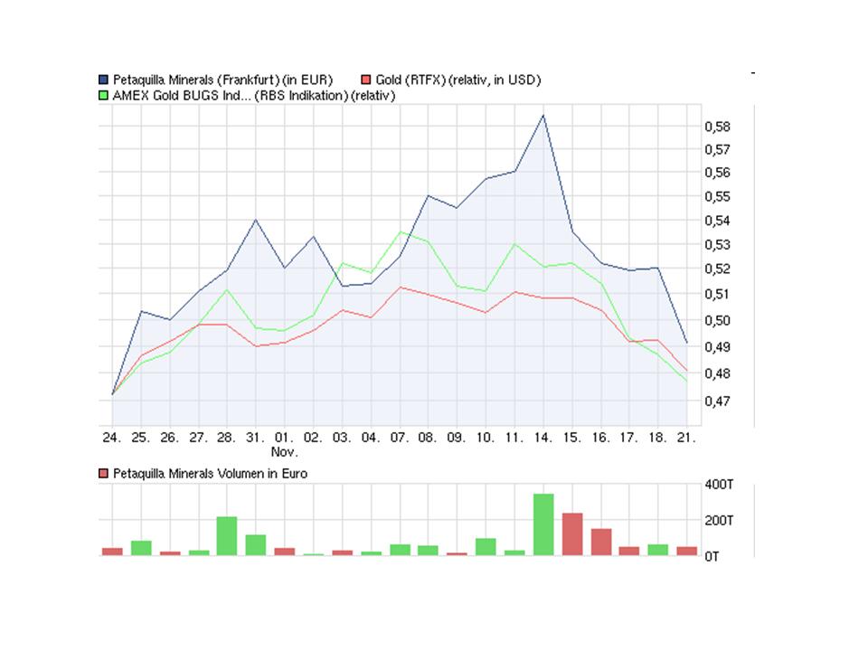 wie ein gut aufgestelltes Unternehmen wie PTQ zum Spielball von Finanzmarktmanipulatoren wird. Wenn sich hochrangige Regierungen in USA, EU, und Asien zusammenschließen und in knozertiereten Aktion die Edelmetallpreise drücken um das vermeintliche Vertrauen in deren Papierwährungen zu stützen, fängt man an das Vertrauen in die Führungsriegen zu verlieren. PTQ wird diesen Eingriff sicher verkraften, zumal die nächsten Zahlen, die ja dieser Tage als vorläufige erwartet werden, aller Voraussicht nach gut ausfallen werden. Manch schlechter aufgestelltes Unternehmen wird durch solche Maßnahmen aber regelrecht totgedrückt.