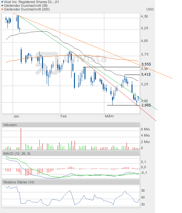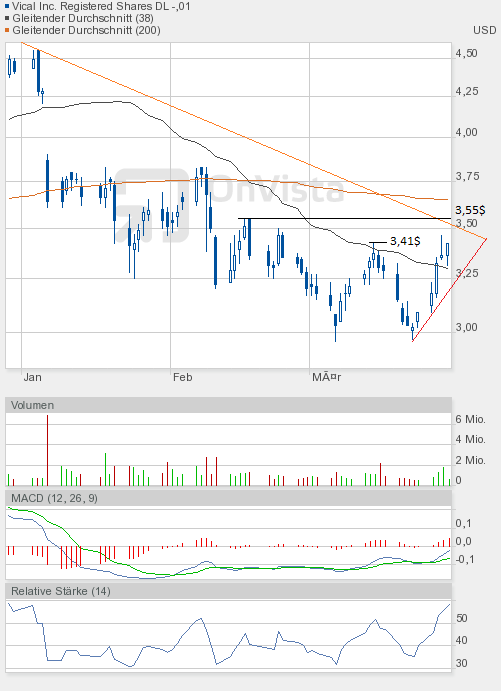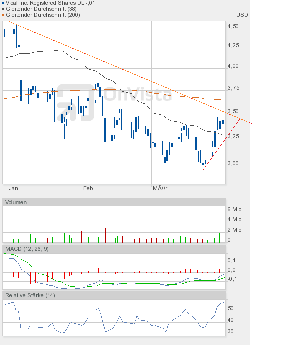 Eine bodenlose Frechheit, wie man mit dieser Aktie umgeht. Die letzten Tage sind unter anderem von einem deutlich unterdurchschnittlichen Handelsvolumen geprägt. Heute ein Volumen von lächerlichen 535000 Stück. Und trotzdem glaube ich an einen neuerlichen schönen Anstieg von Vical.