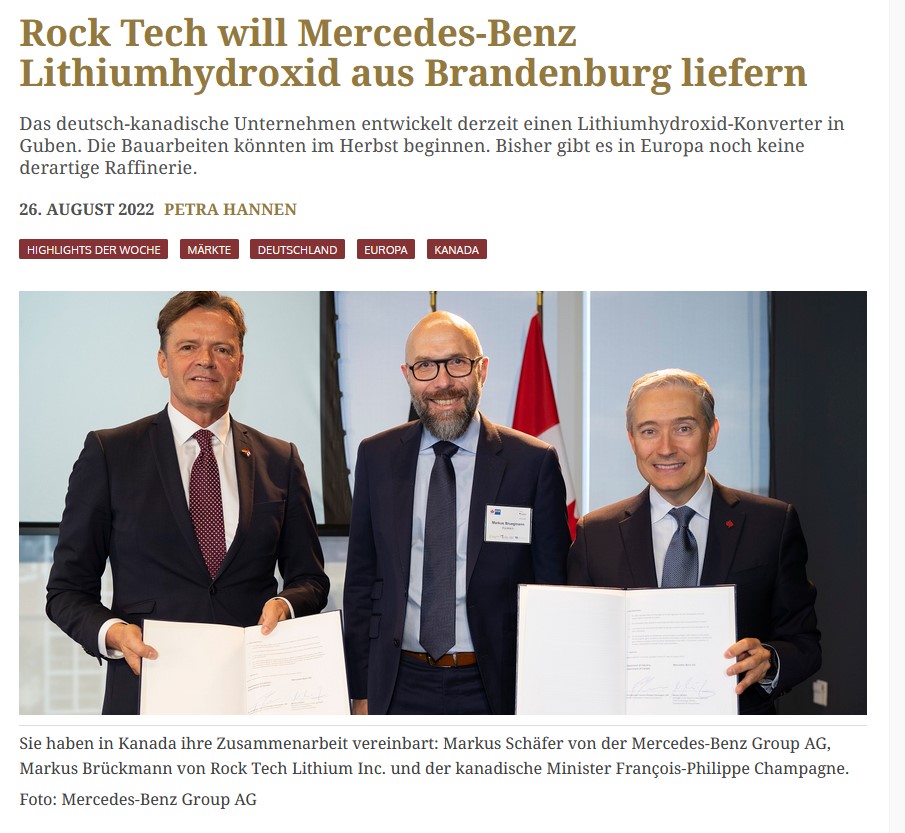 Neuigkeiten, die evtl. mit Rock Tech Lithium in Verbindung zu bringen sind.....