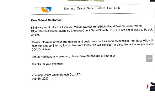 ... The Company has received orders for the COVID-19 IgG/IgM Rapid Test from a broad range of healthcare customers including large medical centers, municipalities, first responders, medical practices, and other healthcare customers. The Company expects to have all customer backorders filled in the coming days...