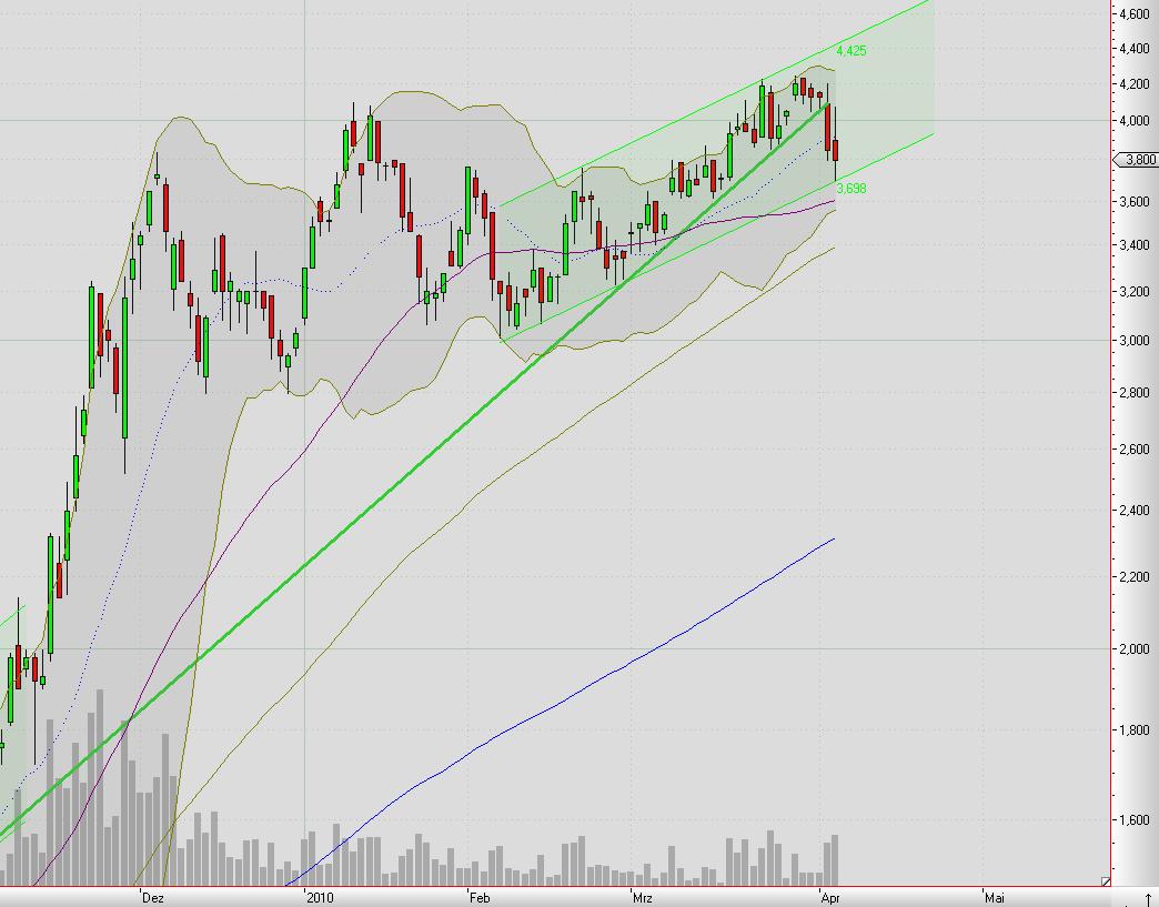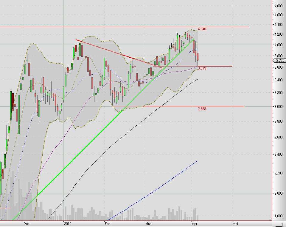 kleine unterstützung aus dem märz die auch heute gehalten hatte liegt bei 3,62, ist auch genau MA50. MA38 hatte gestern gehalten, ist heute aber gefallen.