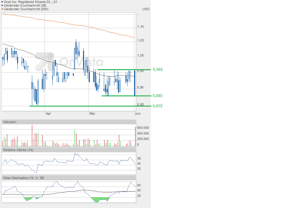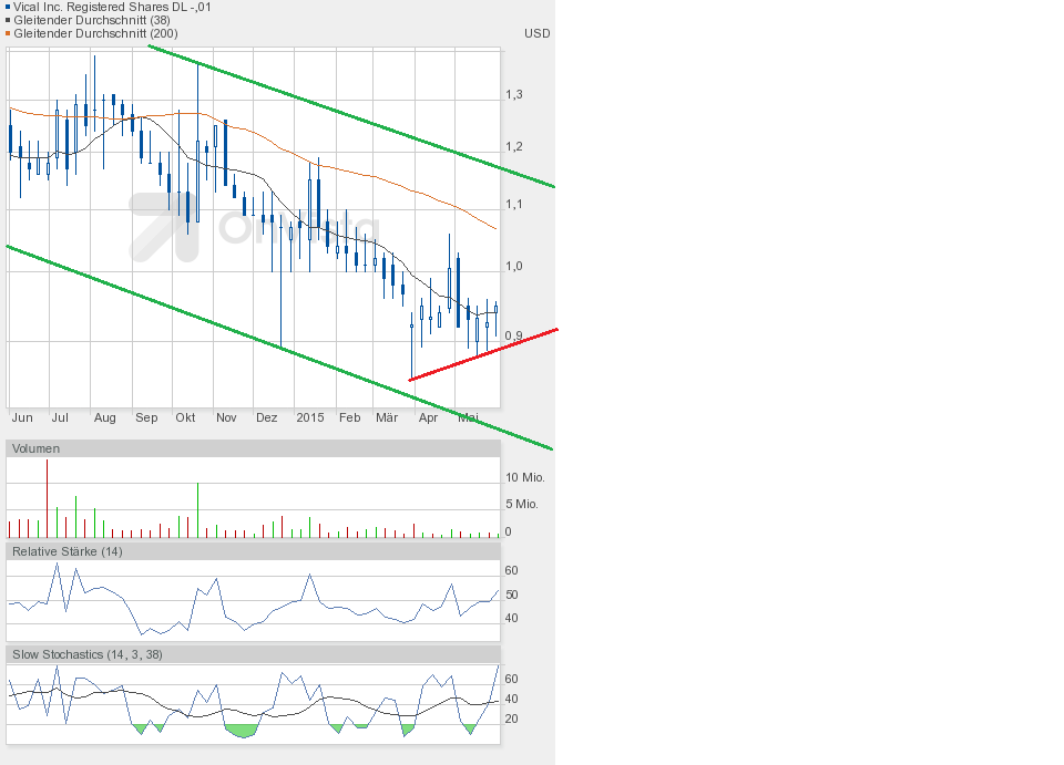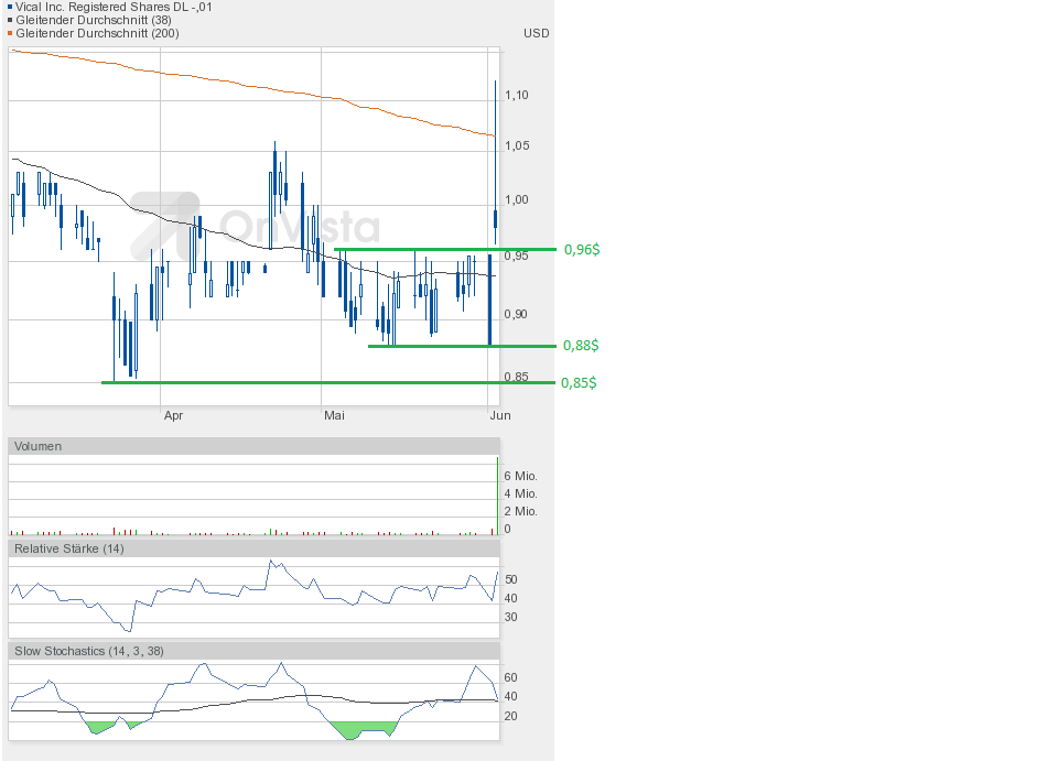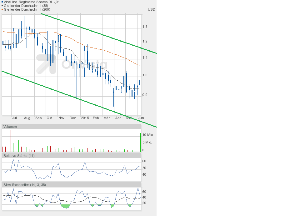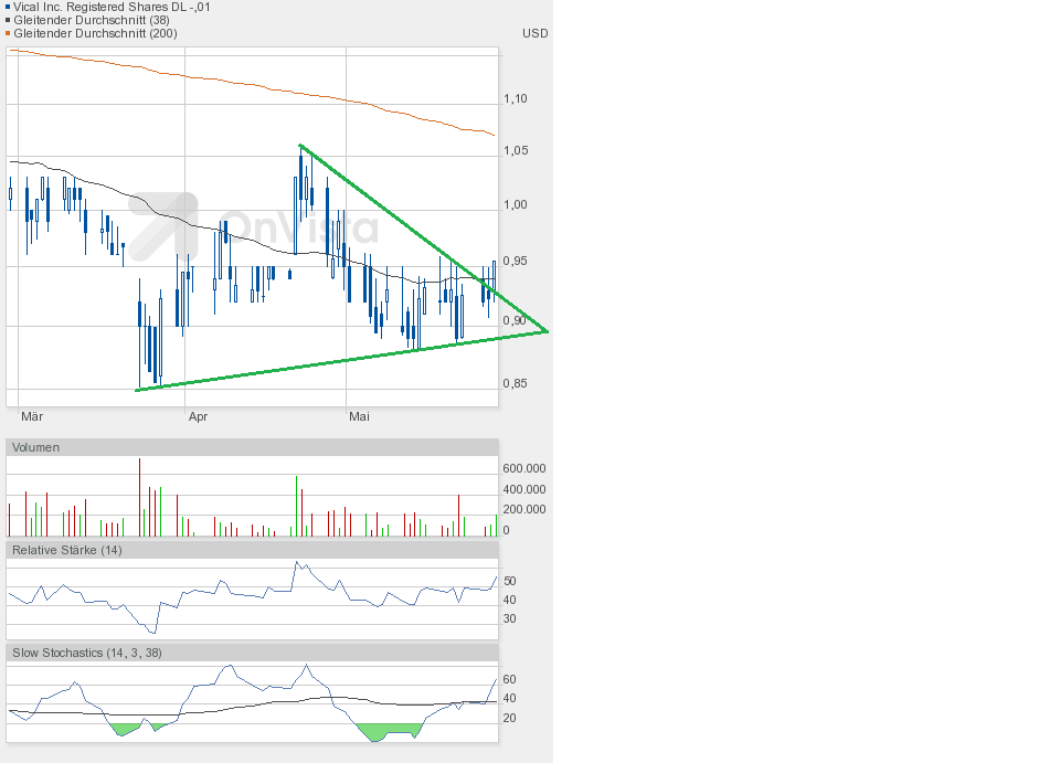Heute konnte Vical die gute Ausgangsposition nutzen und weiter zulegen. Schlusskurs 1,02$ auf Tageshoch und höherem Volumen von etwa 750000 Aktien.