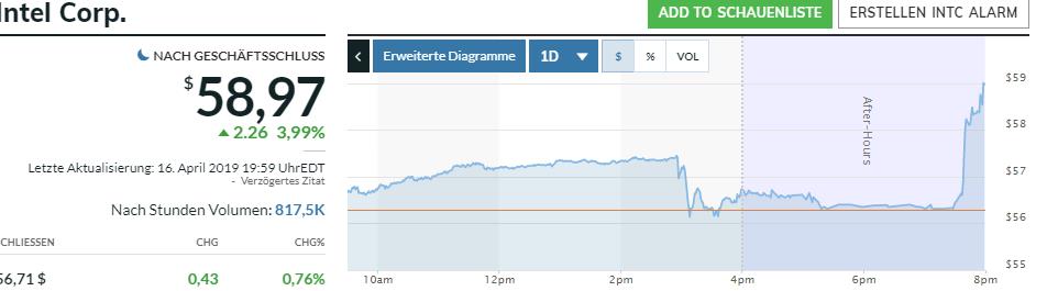 der Grund warum die Intel Aktie gestern innerhalb von Minuten von 57,47 auf 56,14 einbrach war die Einigung von Apple und Quarlcomm.