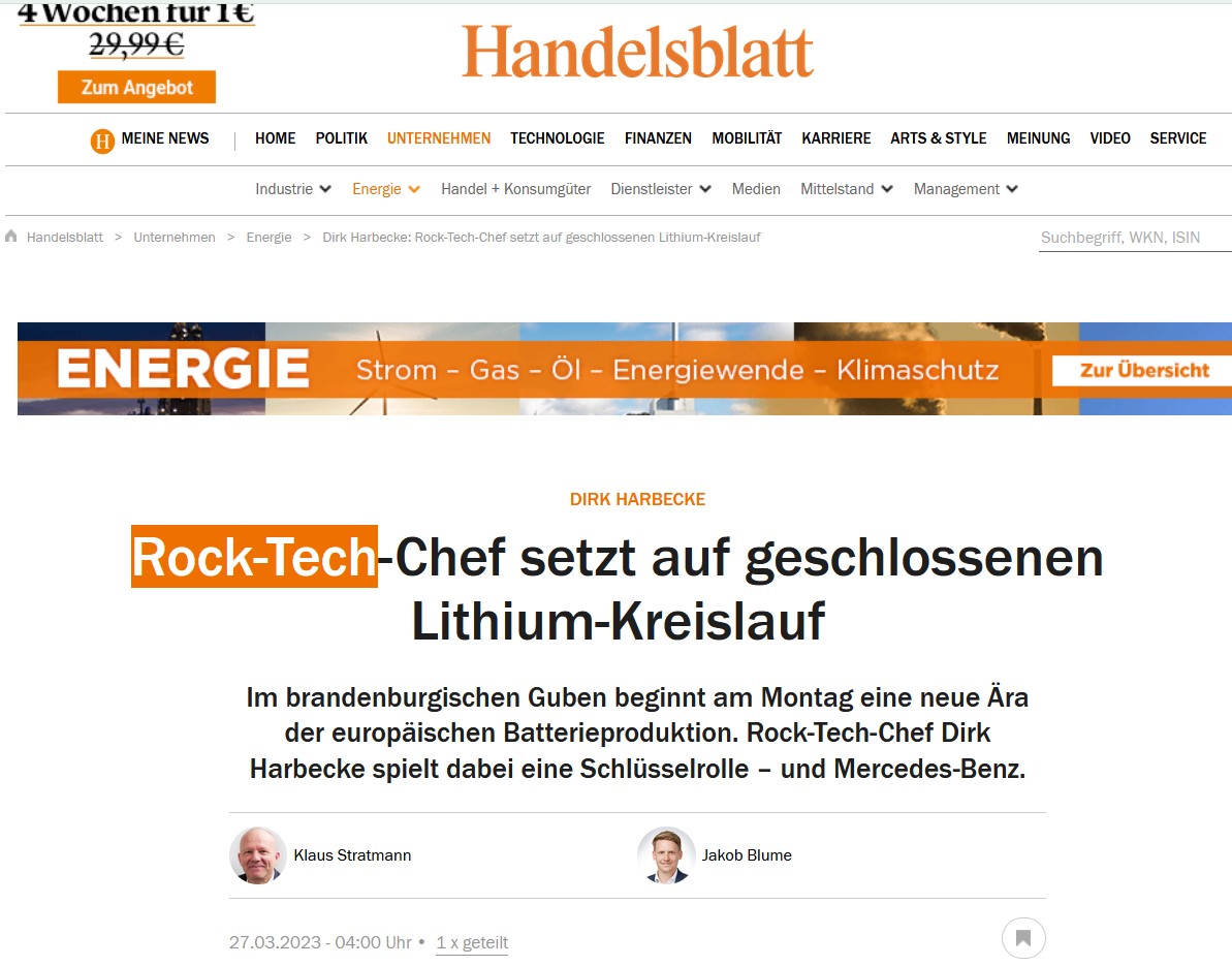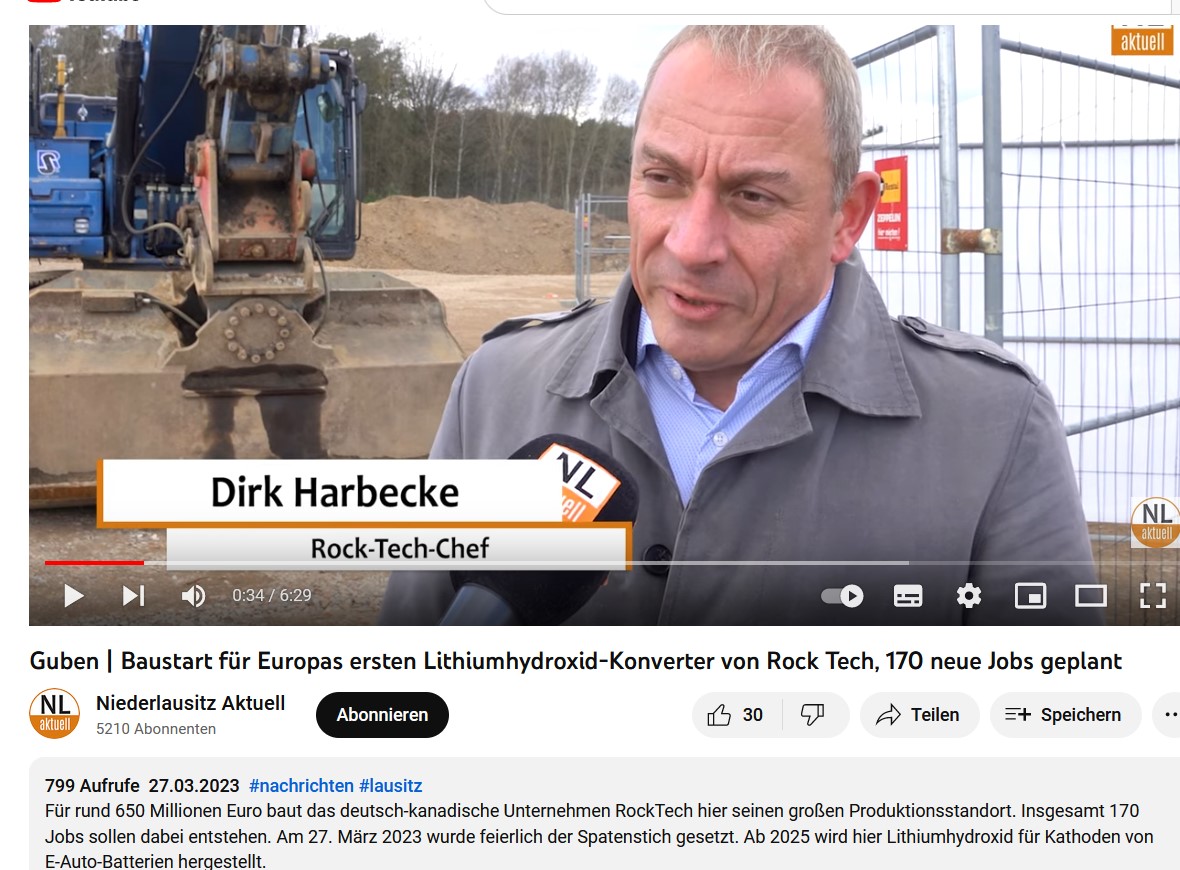 Zitate: "Durch die kürzlich vom zuständigen Landesamt für Umwelt erteilte Genehmigung des ersten Teilantrags für den Lithium-Konverter von Rock Tech ist ein wichtiger Schritt zur Versorgung europäischer Autobauer mit Lithiumhydroxid getan."
