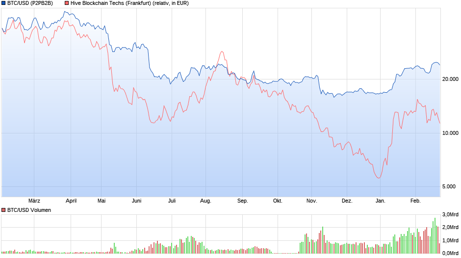 gute Zahlen aus 2023 aber wo bleibt der Kurs ? Im Jahr 2023 wurde etwa ein Prozent der neu in das Netzwerk eingebrach­ten Bitcoin von HIVE Digital Technologi­es Ltd. (TSX-V und NASDAQ: HIVE, FSE: YO0) geschürft.­ Insgesamt waren dies 3.260 Bitcoin oder im Durchschni­tt neun Bitcoin pro Tag. Erreicht hat das Unternehme­n diesen Leistungss­prung durch eine Verdopplun­g seiner Hashrate. Sie stieg im Kalenderja­hr 2023 von zunächst zwei Exahash pro Sekunde auf vier Exahash pro Sekunde an.