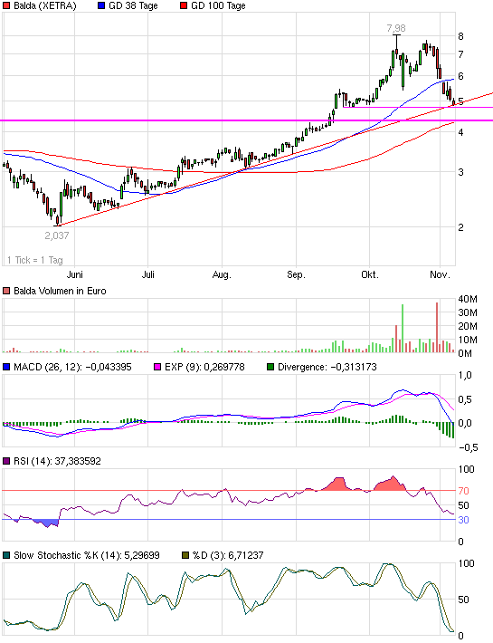 Ist eher ein Zock als ein Investment. Teilweise charttechnisch begründet, teilweise durch die TPK-Beteiligung in Höhe von knapp 7 € pro Balda-Aktie. Balda selbst würd ich in operativer Hinsicht aber nicht kaufen. Die wäre wohl nur 2 € pro Aktie wert. Aber mit TPK zusammen sind es nunmal 9 €. Selbst wenn sich TPK halbiert, wäre man noch auf dem jetztigen Bereich sinnvoll bewertet. Über 6 € würde ich allerdings schon wieder ans verkaufen denken.