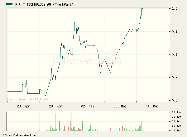 P&T Technology wird kurzfristig nicht weiter steigen. Prognose für P&T Technology (Nachrichten) für Montag den 9. Mai: 0,74 Euro.
