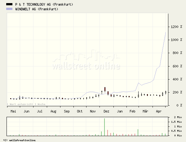 Würde man ein KUV von 1 als fair bewertet ansetzen, wären wir bei P&T bei Kursen von 4,30 Euro. Aber einer Windwelt gönnt man ja sogar ein krasses KUV von über 12!!!