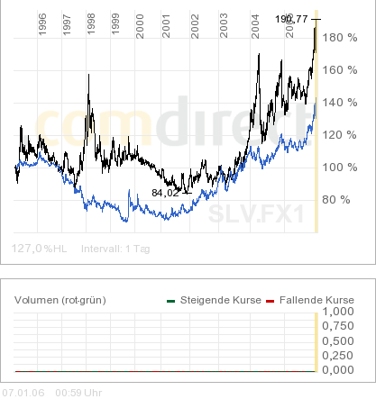Goldminenaktien legten ebenfalls kräftig zu. Der Gold- und Silberindex der Börse in Philadelphia, der die Kursentwicklung von 13 Edelmetallfirmen widerspiegelt, stieg am Freitag um bis zu 3,5 Prozent auf 140,03 Punkte. Er hat damit das höchste Niveau seit 18 Jahren erreicht. Der Index hatte zuvor in den vergangenen zwölf Monaten um 45 Prozent zugelegt.