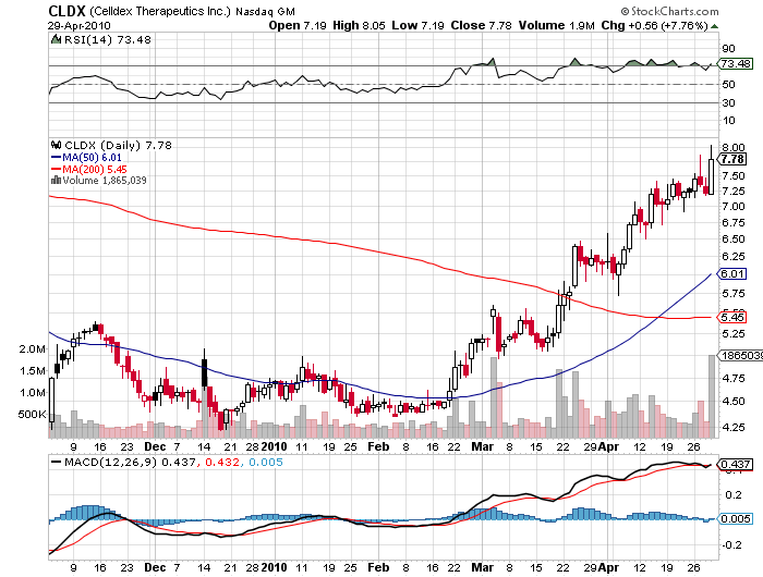 Celldex läuft gut, Kerx läuft Celldex aber den Rang ab, owbwohl die Pipeline Celldex wesentlich voller ist