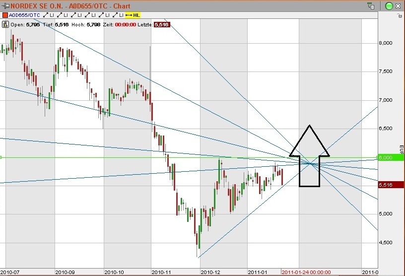 Rückblick: So Recht gelang es der Nordex Aktie bisher nicht die übergeordnete und seit November 2007 eingeleitete Abwärtsbewegung zu beenden. Wenngleich durch die im Dezember des vergangenen Jahres markierten Kurstiefs bei 4,25 Euro zunächst eine Stabilisierung gelang.
