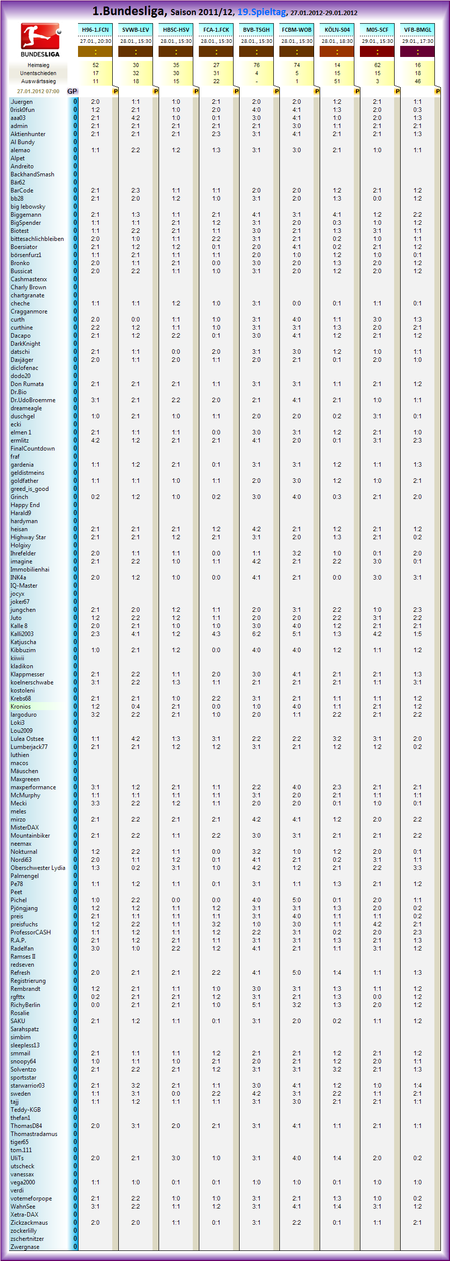 Mach Platz BigL. die Ergebnisse vom 19. Spieltag
