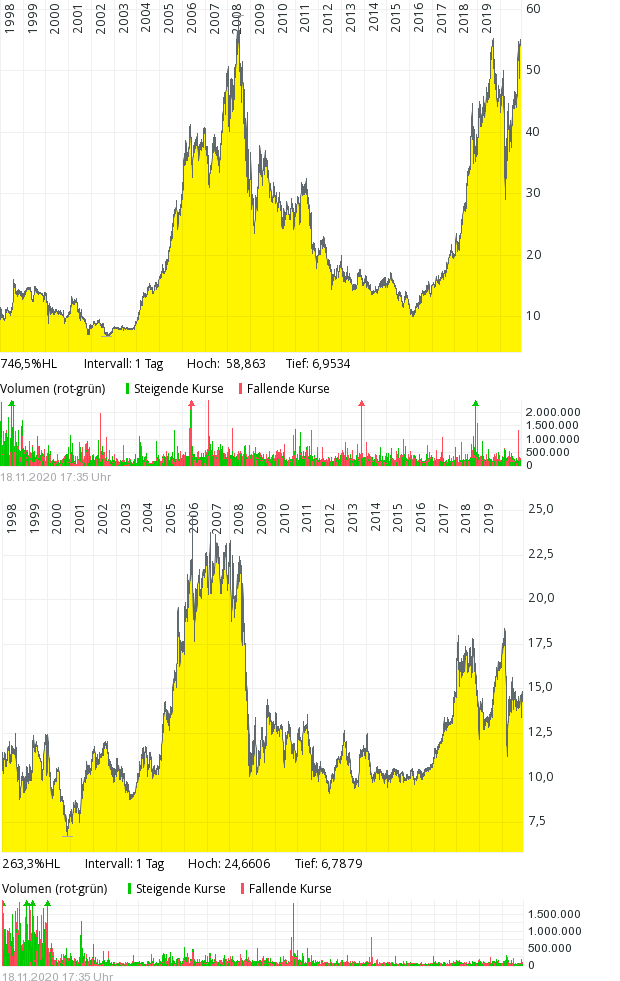 immer in den letzten 25. Jahren wenn die Verbund Aktie auf 40 stieg, ist auch die EVN Aktie auf zumindest etwa 18-19 Euro nachgezogen,