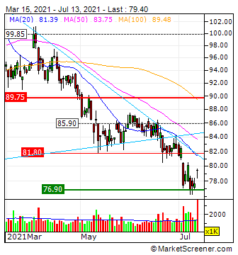 Wie erwartet kommt der Kurs sofort unter die Räder. Im Weekly ist der technische Boden jetzt weitergewandert zu 76,90.