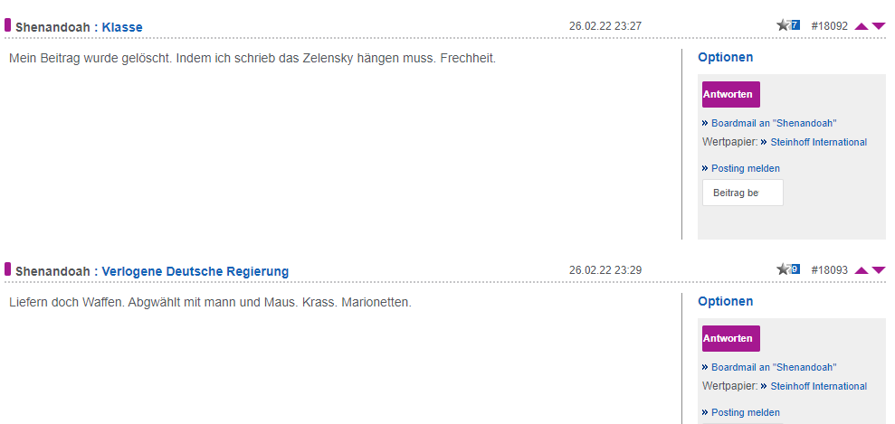 P.S. Bauchi-danke für das einstellen. Ganz übel diese Post's-also treiben sich die Putin-Freunde nicht nur im Gazprom und Steiniforum sondern wohl überall rum.