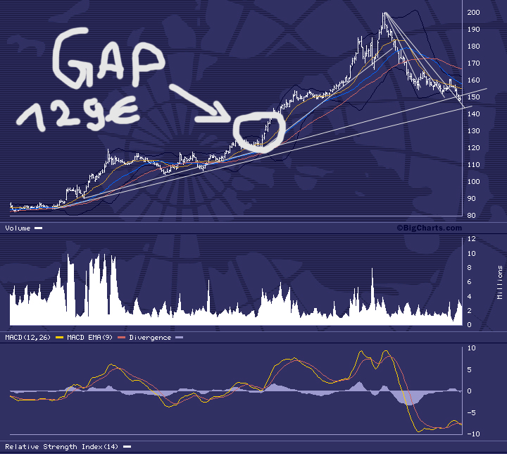 Der Schlusskurs bei 149,16 setzt also das Szenario nicht automatisch in Kraft. Von hier aus ist immer noch eine deutliche Gegenbewegung denkbar, zumal die Aktie kurzfristig überverkauft ist und das Down-Momentum nachlässt.