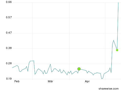 Demnächst die 1 Euro streifen, dann Rücksetzer auf 0,8, anschließend durchstart bis 2 € und nach Spätsommer auf die 4-5 € mit jeweils kleineren Korrekturen.