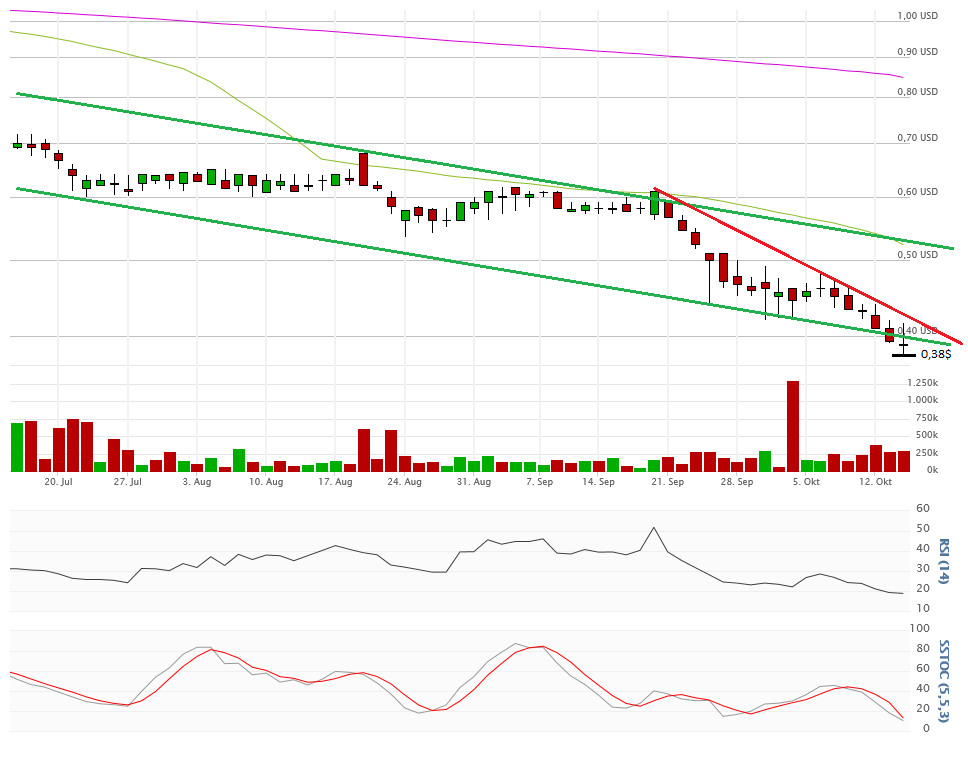 Bis 0,44$ fiel der Kurs nach unten, am Ende bleibt 0,50$ stehen. Es kommt ein Allzeittief nach dem nächsten. Aber das könnte nun endlich ein Ende haben.