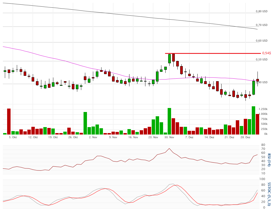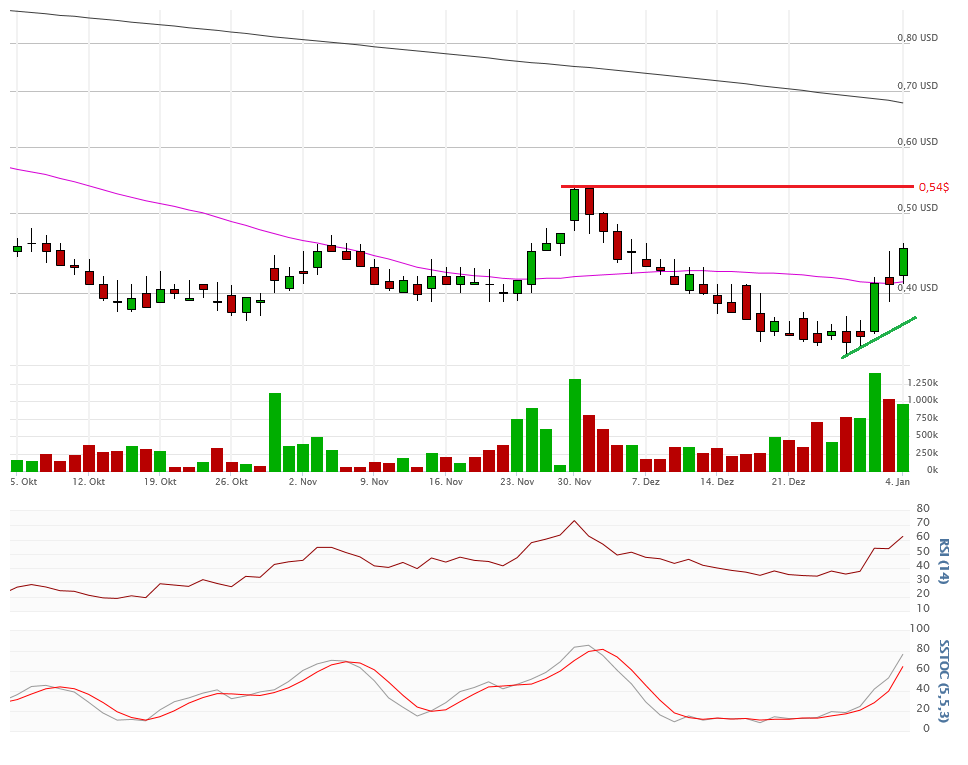 Ein Anstieg bis 0,54$ wäre wünschenswert, gestern war die Aktie bei 0,47$ im Hoch.