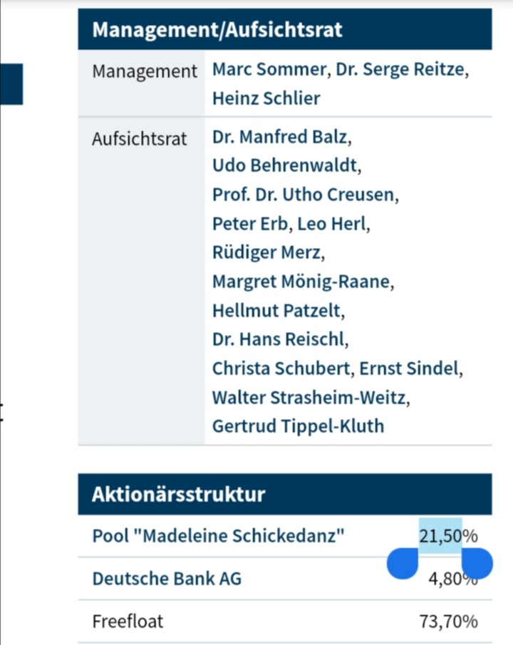 neu0,0004 %, laut Liste Herr Vedder 21,5282 % , Frau M. Schickedanz Anteile sind 21,5286%