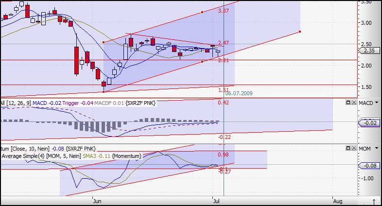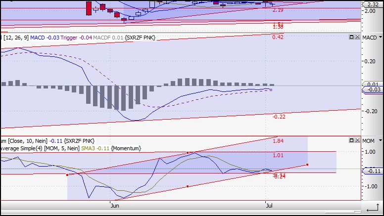 auch, wenn der RSi eine überkauft-Lage anzeigt, dürfte es m.E. weiter nach oben gehen, da mächtig Druck dahinter ist (s. Momentum). Auch das Bollingerband läßt zunächst vermuten, dass Uranium heute zurückfallen sollte. Aber ich glaube dies höchstpersönlich nicht wegen des zuvor beschriebenen Drucks ! Abwarten. Wenns runter gehen sollte handelt es sich nur um eine vorrübergehende Korrektur.