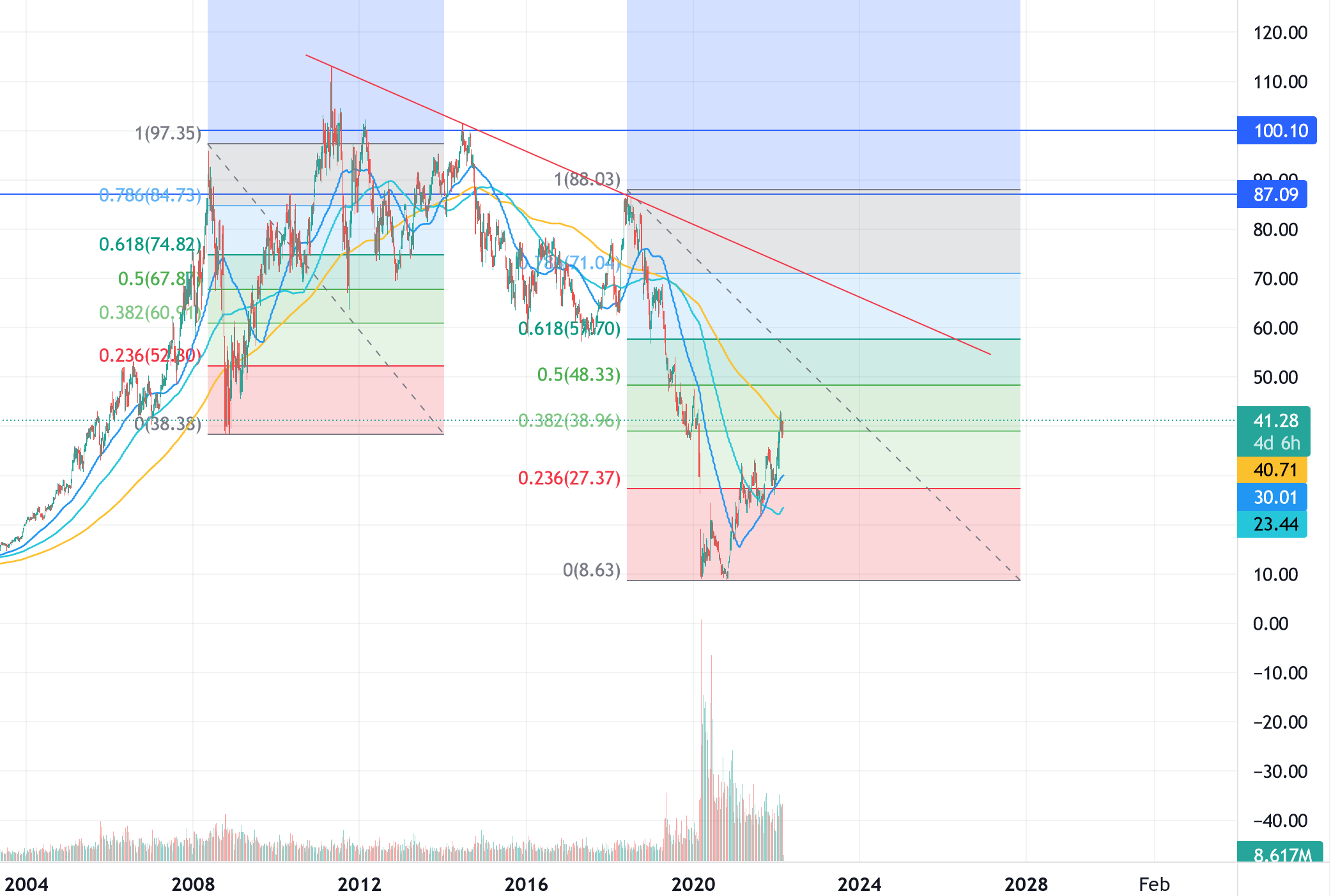Ich rechne immer eher konservativ, wenn aber die Schulden deutlich schneller reduziert werden können (so sieht es gerade aus), können wir auch schneller zu Fib bei 0.786 kommen. Wäre schon nice, wenn wir es bis Ende 22 schaffen. Das wichtigste ist der Öl-Preis wie gesagt. Weil dann alles andere nur eine Frage der Zeit ist.