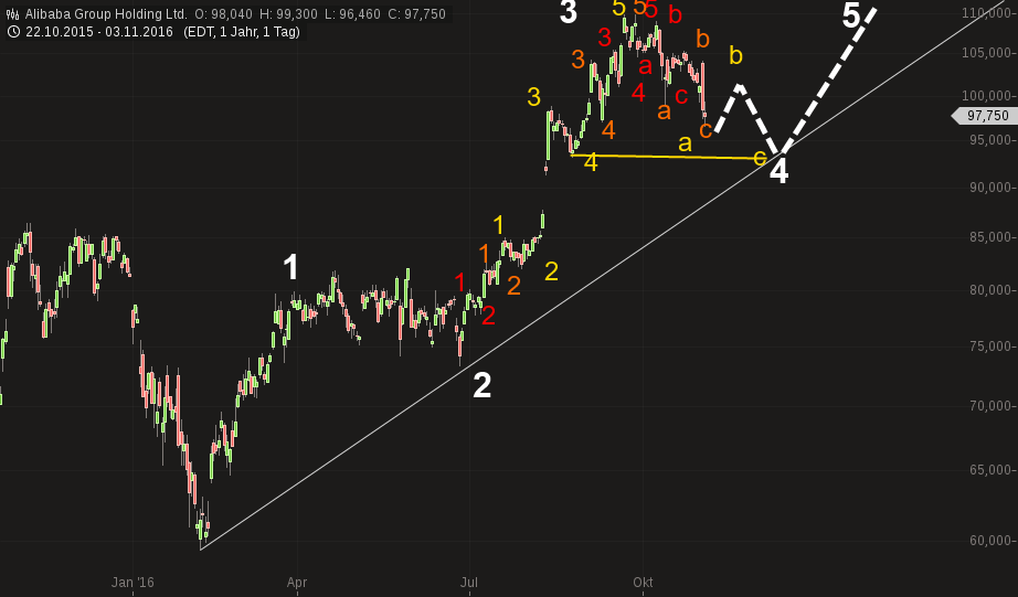 Mein Lieblingsszenario wäre: Welle 5 auf 140$ mit dem Alipay IPO, der bald ansteht...und dann Absacker auf die 85$ im Rahmen der Korrektur hier und den Märkten...
