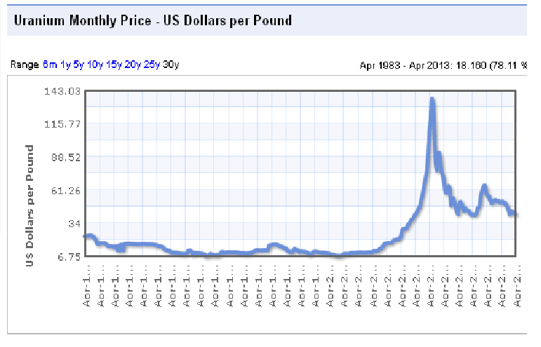 @gloryjackson: Erst einmal vielen Dank für die Charts. Insbesondere Uran hat mich sehr interessiert. Bei Silber sieht man jedoch auch, dass von 1980 bis 2003 kein Mensch investieren wollte. Wenn wir jetzt plötzlich die 5-fachen Kurse sehen sollte man nicht unbedingt nachkaufen.