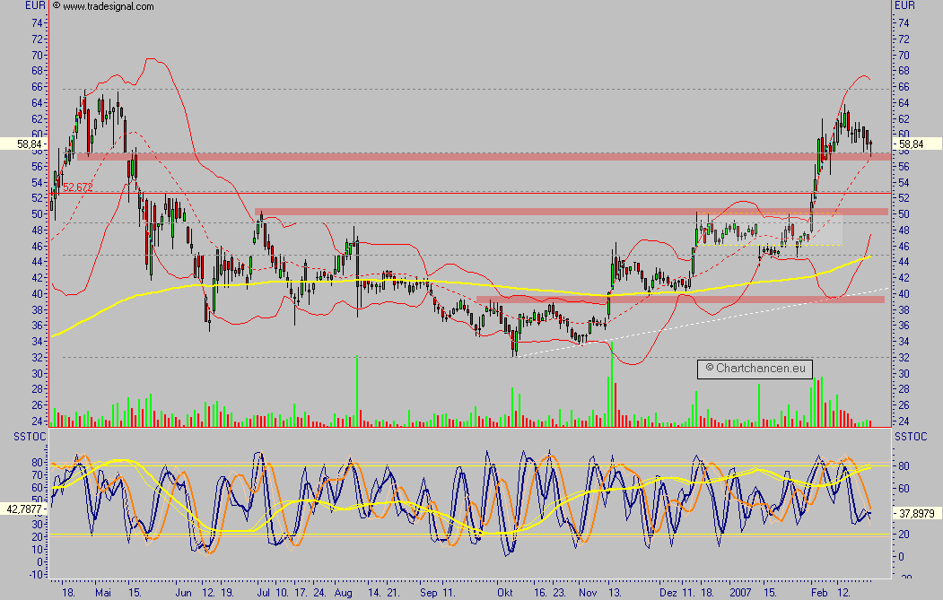 Conergy befindet sich in der Korrektur, es ist die Frage welcher Move korrigiert wird, derzeit sieht es für mich aus, als würde sie zunächst nur den letzten Move korrigieren um dann das Top zu erreichen oder zu überbieten. die rechnerischen Ziele für diese Korrektur liegen bei 56,50 und 54,25, das Supportziel liegt ebenfalls bei 56,50 und wurde bereits knapp erreicht, ein weiter, dicker Support liegt um 50,50 und sollte möglichst nicht erreicht werden, sonst wird der Komplettmove bereits jetzt korrigiert.