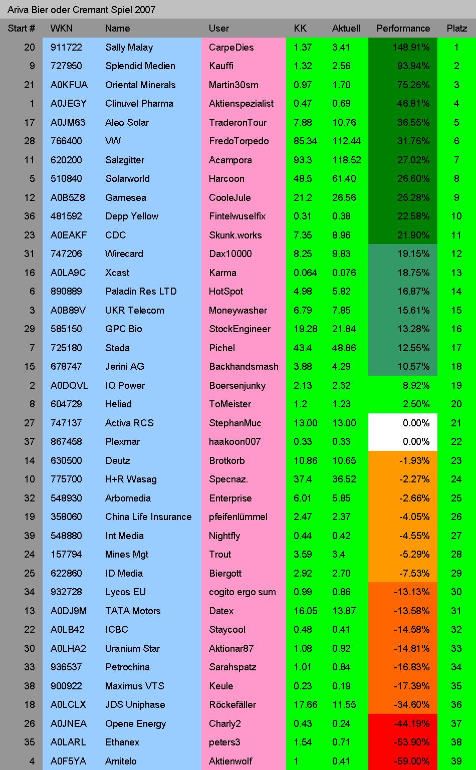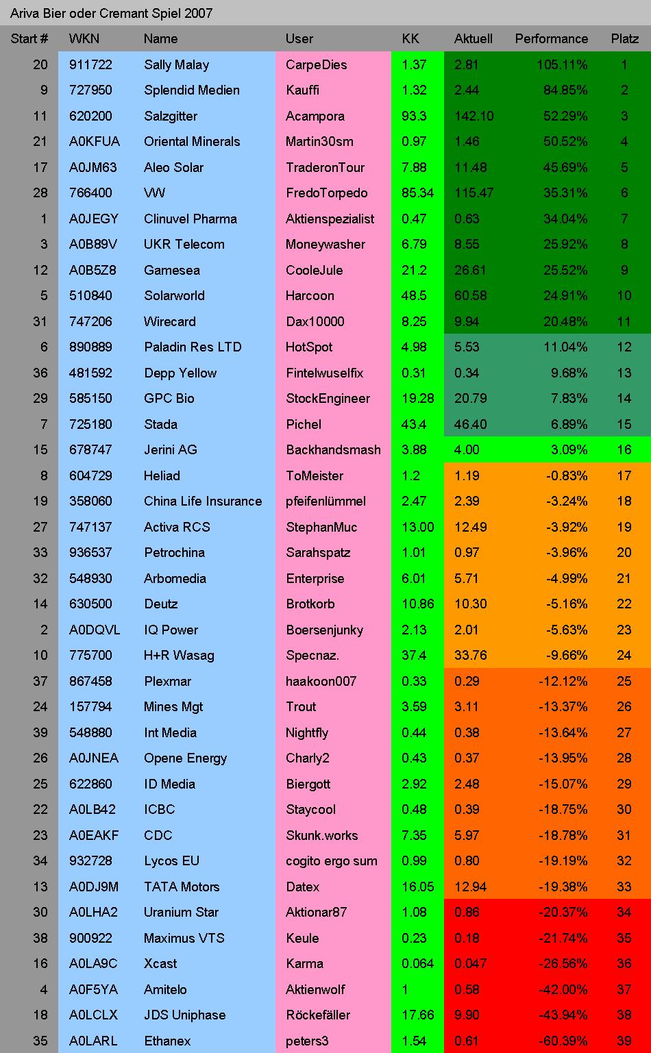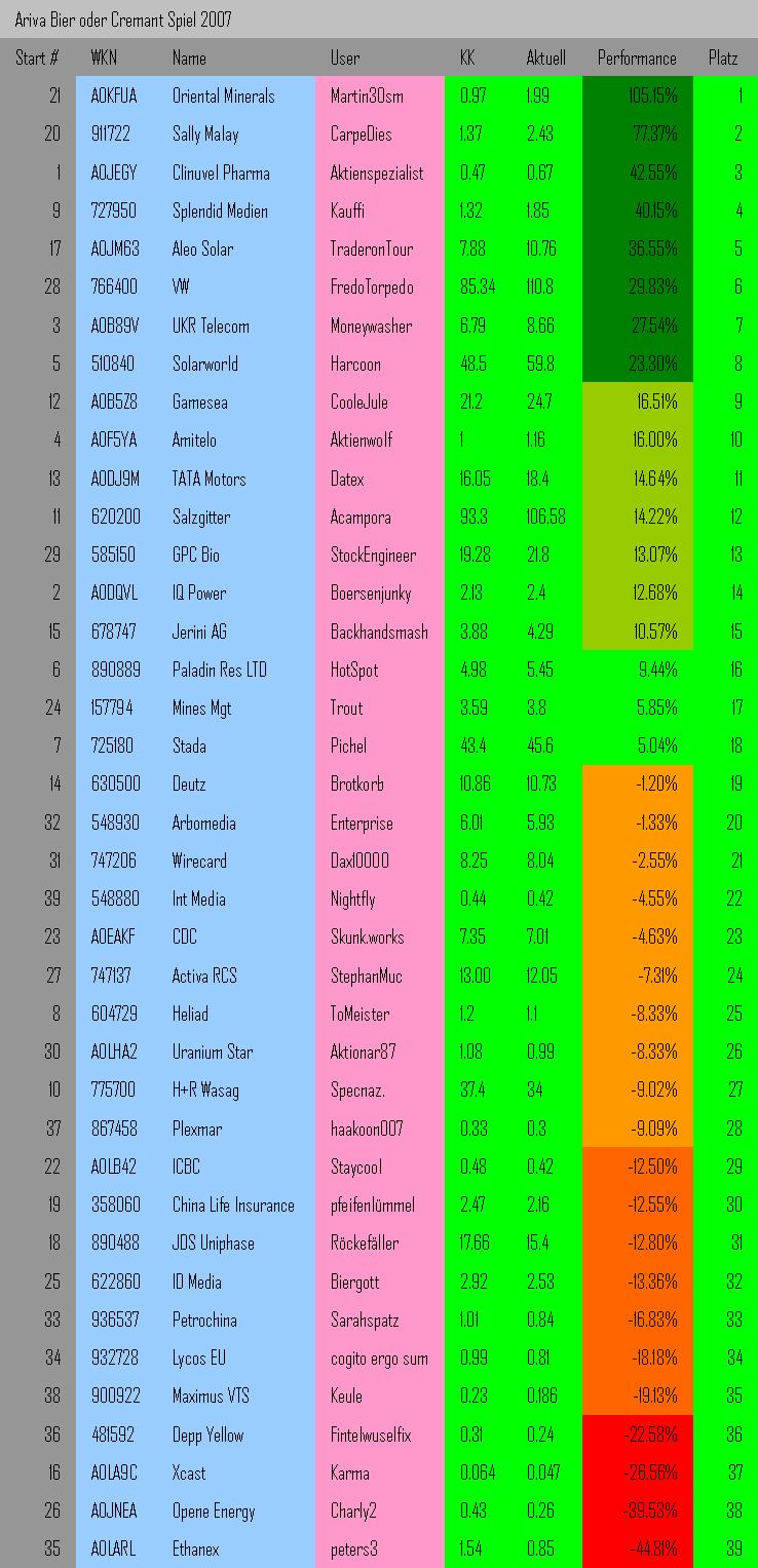 Ariva Bier oder Cremant Spiel 2007 Positionen News Zusammensetzung Konfiguration