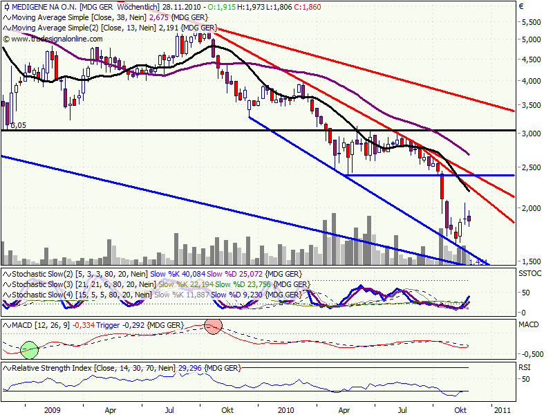 Erst wenn die 38-Tagelinie nachhaltig 100er von unten nach oben durchbricht könnten