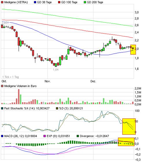 Die 38-Tagelinie hat gehalten und der MACD auch.