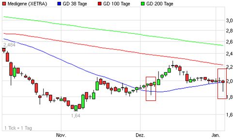 Die 1,96 € und die 38-Tagelinie hat gehalten.