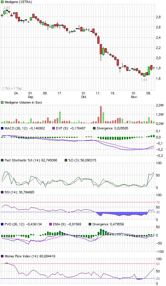Sollten jetzt noch die 2,10€ geschafft werden, ist nach lnger Zeit die 38-Tagelinie durchbrochen und es könnte noch bis zum nächsten Wiederstand von 2,20€ gehen.