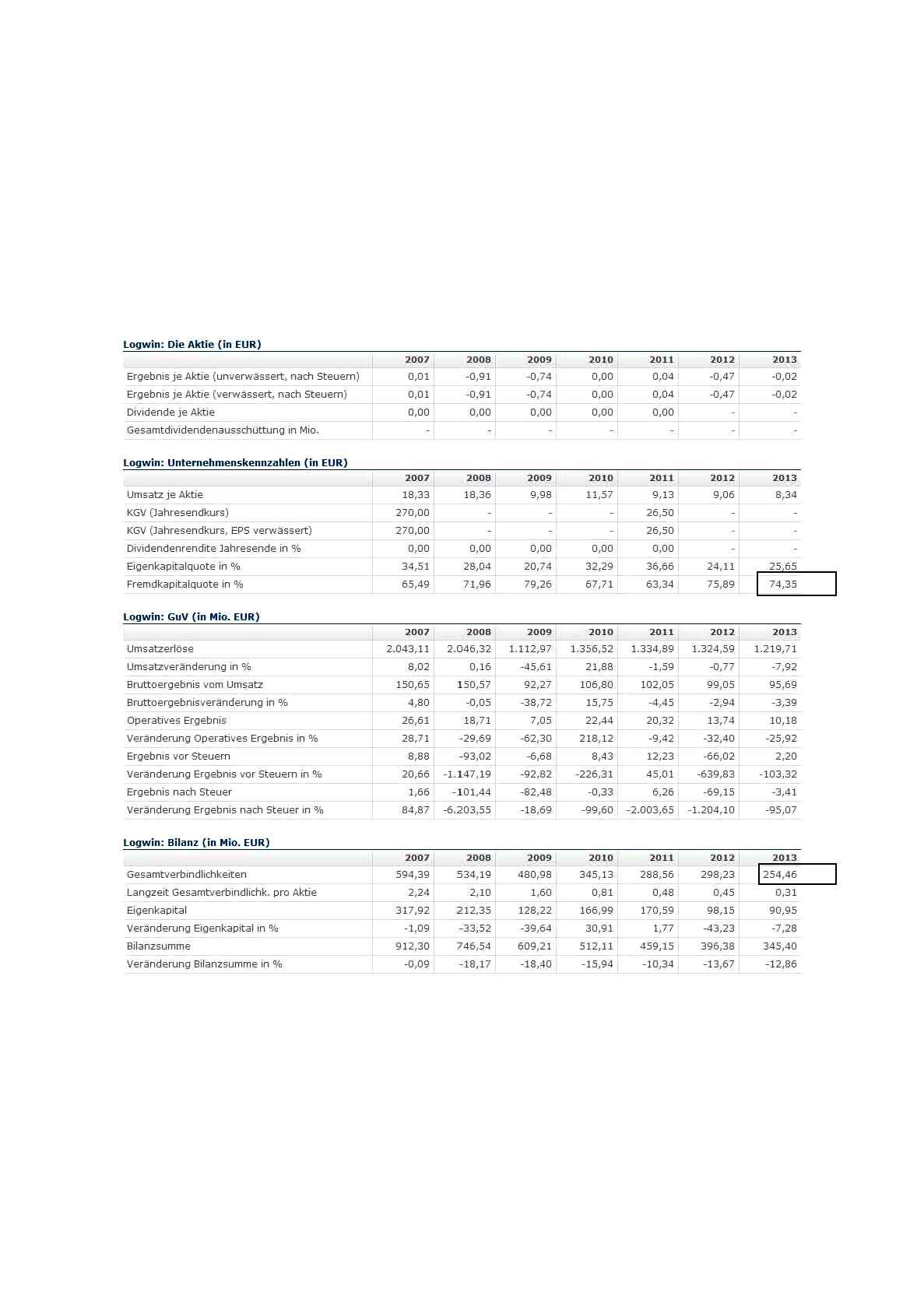 Zu spüren bekommen das die Aktionäre, wenn die Wirtschaft abkühlt oder der Logistik-Bereich aus anderen Gründen unprofitabel wird. Kleine Buden wie Logwin ohne nachhaltige Wertbewerbsvorteile sind dann schnell weg vom Fenster.