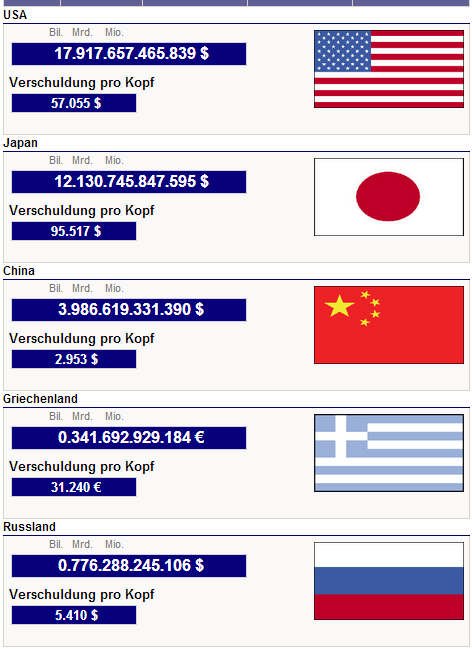 und dann schau dir die drei pro Kopfschulden an............und sag noch einaml wo das Geld am sichersten sein wird du Knaller.....