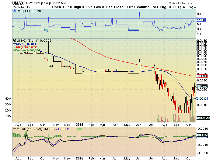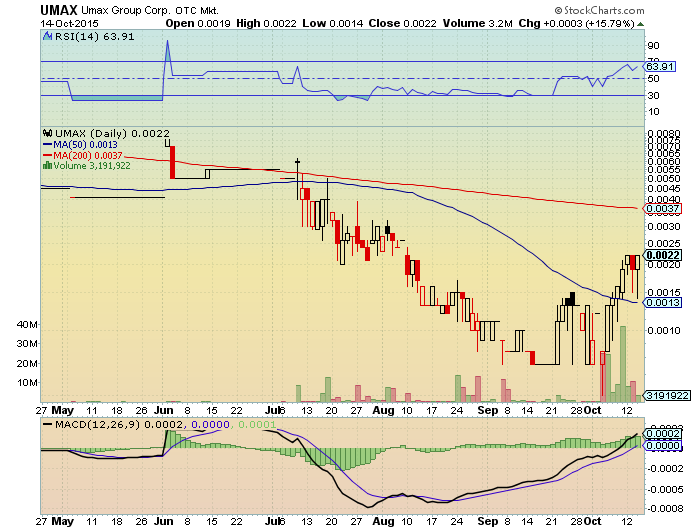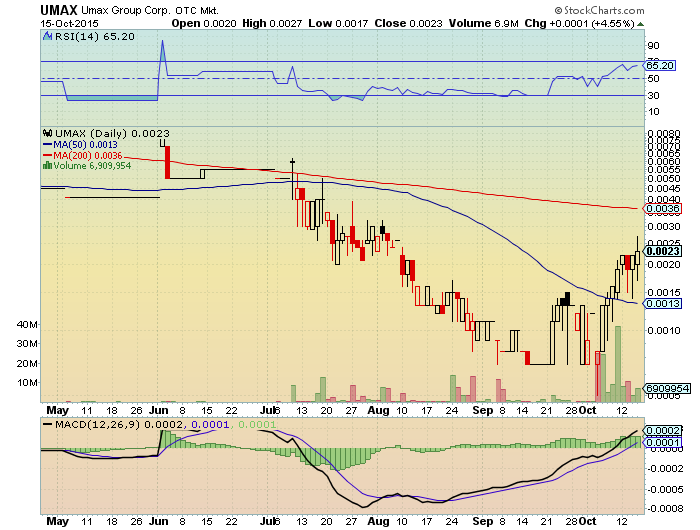 Aufwärtstrend. USA erwartet nächste Woche die erste Blockbuster news für UMAX. Der $01 Durchbruch wird nicht lange auf sich warten lassen. $05 das erste angestrebte Kursziel in USA könnte schneller kommen als man denkt.