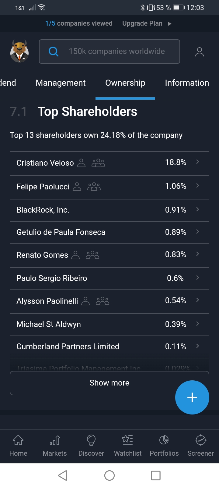 Der Aktienanteil von Verde Insidern ist über 20%, er war vor kurzen noch höher, der CEO Velosco hat in 22 erstmalig verkauft. Nachdem er seit 2004 nur mit Aktien bezahlt wurde und bis dahin keine Verkäufe getätigt hat.