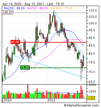 ...dass der Wochenschluss unter 77 bleibt bin ich erstmal wieder mit kleinem Gewinn raus. Nun will ich erst eine Trendwende bei Tencent sehen und davon ist absolut nichts zu merken, weil der Titel in Hong Kong bei einem steigenden Gesamtmarkt weiterhin unter Verkaufsdruck steht. Man muss schauen wie die Annahmequote am 12. August ist, vorher wird sich hier nicht viel tun. Das Risiko, dass eine Erholung bei 76,9 wieder abverkauft wird, ist hoch.