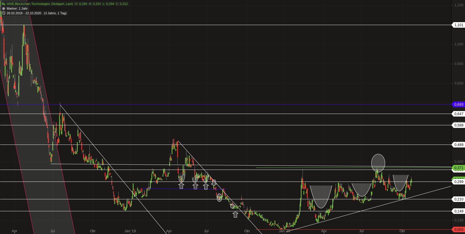 Volatile Werte wie HIVE zu traden birgt die Gefahr dass der Zug ohne einen abfährt..