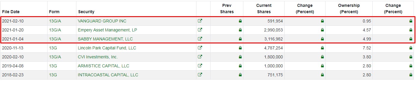 Die letzten geänderten Fillings (S13G/A = amended) sind vom Januar und Februar vor der KE und es waren alles drei Verkäufe, also Kürzungen in den Beteiligungen.