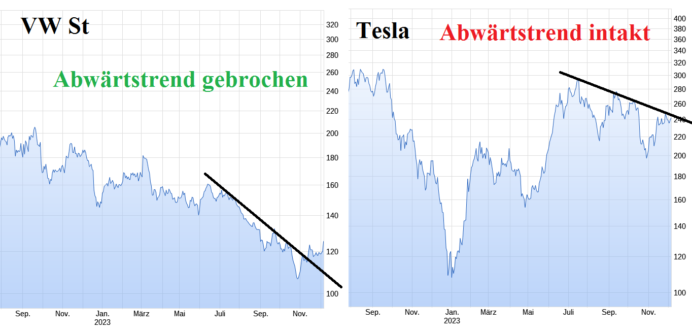 Für den jüngsten Anstieg genügten lediglich wenige positive Meldungen, nachdem sämtliche Probleme des DAX-Konzerns größtenteils schon im Kurs eingepreist waren. Weitere gute Nachrichten sollten VW Rückenwind bescheren.