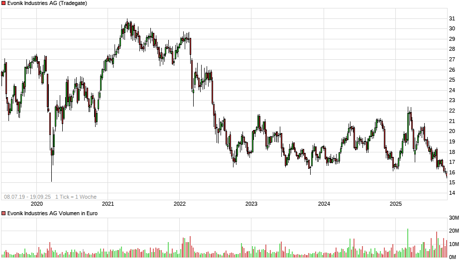 Es sollte aber doch auffallen, dass Evonik vor drei Jahren bei 16,50 bis 17,00 Euro notiert hat und nun nur rd. 10% tiefer steht. Andere Chemieunternehmen hat es deutlich heftiger erwischt. Wacker ist von 104 auf 62 runter.